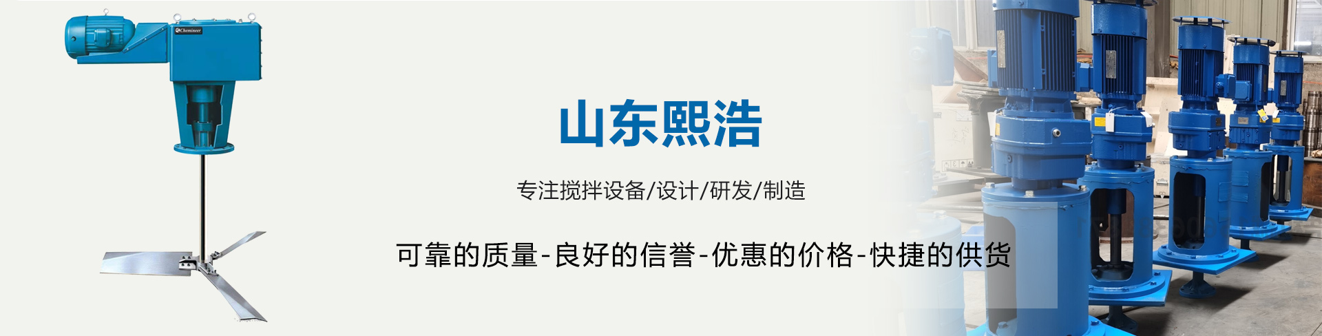 公司產品主要包括:電機、減速機、高效攪拌器、立式攪拌裝置、側入式攪拌裝置、底入式攪拌裝置、機械密封、常壓容器、濃密機、刮泥機等,熙浩公司實行計劃管理,注重過程控制,成品出廠100%試車試驗,為客戶制造國際品質的產品
